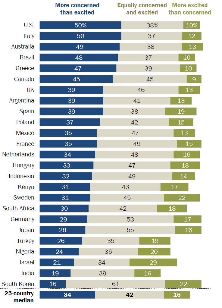 - 34% is meer bezorgd dan enthousiast over de groeiende inzet van AI in het dagelijks leven
